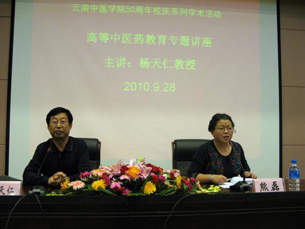 云中讯(科技处)随着云南中医学院50周年校庆系列学术活动的启动,作为校庆系列学术活动之一,我院邀请黑龙江中医药大学杨天仁教授到我院进行了专题学术讲座。927杨天仁教授在信息大楼一楼报告厅为我院学生作了“如何提高大学生专业素质”的专题讲座,928上午为我院教职工作了“如何提高教师素质”的专题讲座。928日下午与我院党政领导及相关部门主要负责人举行座谈。