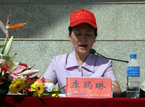 院长李玛琳教授发表了热情洋溢的讲话。她首先代表学院党政领导对武警昆明指挥学院首长和全体教官表示衷心的感谢,对全体参训师生表示亲切的慰问,向2010级参训同学经过艰苦训练获得优异成绩表示热烈的祝贺!她指出通过军训,2010级学生综合素质有了明显的提升,精神面貌焕然一新,为即将开始的大学学习生活奠定了坚实的基础;通过军训,同学们强化了组织纪律观念,养成了服从命令、听从指挥、严守纪律的良好习惯,形成了团结友爱、互帮互学的团队精神。