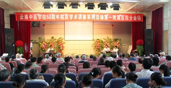 云中讯【科技处、附一院】 2010年9月10日,正值第26个“教师节”,“2010年中医中药中国行?中医药文化科普宣传周”暨“云南中医学院50周年校庆系列学术活动启动仪式”在我院第一附属医院一号楼报告厅隆重举行。受院长、院学术委员会主任、50周年校庆筹委会主任李玛琳教授委托,院党委副书记、50周年校庆筹委会副主任、校庆活动总指挥王翠岗出席仪式并宣布“云南中医学院50周年校庆系列学术活动”正式启动。王副书记在启动仪式上简要介绍了我院50周年校庆活动的总体安排,并特别就校庆系列学术活动的宗旨作了说明。他强调:学术水准是高校水平最重要的标志,学术氛围是大学精神气质的重要表现,交流学术是校庆活动的重要内容。从现在起到今年11月中旬校庆典礼期间,配合校庆总体安排,我院将精心组织策划,邀请院内外专家学者,以专题学术讲座等形式,开展一系列富有特色的学术活动,以展示我院学科建设成就和学术发展水平,为50周年校庆营造浓厚的学术氛围。希望我院师生医务员工及中医药爱好者踊跃参加接下来的系列学术活动,达到交流学术思想、启迪智慧、活跃学术气氛、激励创新精神的目的。