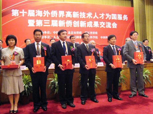 胡锦涛同志曾说过,把海内外中华儿女的力量凝聚起来,为实现中华民族伟大复兴共同奋斗。近十年来,全国侨联系统围绕“科教兴国”、“人才强国”战略,根据海外新侨的要求和愿望,已经连续开展了十届海外侨界高新技术人才为国服务活动,组织了来自世界20多个国家和地区的500多位海外学者,带着750多个科技项目和研究成果,参与了北京奥运、环渤海区域开发、西部大开发和社会主义新农村建设等,签订合作项目100余个。
