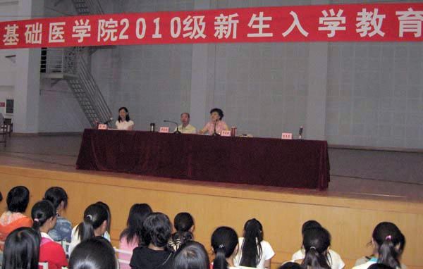 云中讯(基础医学院) 2010年9月1日至3日,基础医学院在学生会堂和科技信息大楼一楼报告厅分四场举行了2010级新生入学教育大会。基础医学院全体党政领导以及2010级全体辅导员、班主任和全体新生参加了本次活动。