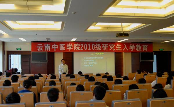 云中讯(研究生部) 2010年9月1日下午1:30开始,由研究生部主办,为期三天的2010年研究生新生学前教育在我院呈贡校区科技信息大楼二楼报告厅举行。学院院长李玛琳教授出席并亲自作题为《云南中医学院及学位与研究生教育》培训,研究生部党总支书记、主任淤泽溥教授,基础医学院陈文慧副院长,中药学院张庆芝副院长,临床医学院研究生科刘红英科长,今年入学的2009级高校教师在职攻读硕士学位的19名同学,2010级141名全日制新同学及研究生部、各二级学院分管研究生工作的老师参加了培训会。培训会由研究生部党总支杨鹤清副书记主持。