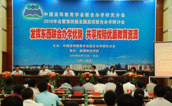 云中讯(新闻中心、摄影冯泽辉) 2010年8月11—12日,我院郑进副院长和教务处长郭召刚参加了在云南曲靖召开的中国高等教育学会联合办学研究分会2010年会,暨第四届全国高校联合办学研究会。本次会议的主题是贯彻落实《国家中长期教育改革和发展规划纲要》,促进高校联合办学,推进对西部地区高校开展教育支援活动。会议上教育部有关领导解读了《国家中长期教育改革和发展规划纲要》,研究了《中国高等教育学会联合办学研究分会关于对西部地区开展教育支援活动助推计划》、《中国高等教育学会联合办学研究分会关于推进校际合作培养学生的实施意见》、《中国高等教育学会联合办学研究分会关于全面推进学校工作的实施意见》等高校联合办学工作。北京(学院路)高校教学共同体交流了在多所高校间建立“一校式虚拟大学”,开展校际间联合办学的经验。各与会高校在讨论中交流了联合办学的成果和经验,并就开展校际间联合办学、开展支援西部高校发展等工作提出了意见。
