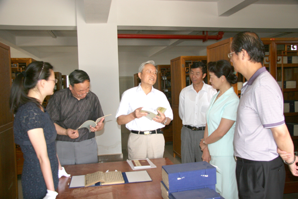 诸会长对我院中医古籍室的建设给予了高度评价,饶有兴趣地查阅了我院珍藏的孤本古籍《性原广嗣》和善本古籍《性命圭旨》,当得知青年教师罗艳秋申请的《云南傣族、彝族医药古籍文献总目提要编纂及其价值研究》课题获得2010年度国家社科基金青年项目立项资助时,诸国本会长十分高兴。他指出,民族医药古籍著作的整理是一项重要的基础工作,希望学校组织专门力量开展此项工作,按统一要求和体例,分工协作,在现有的基础上进一步挖掘整理,填平补齐,力争出版一批具有云南民族地方特色的古籍文献,为抢救和传承民族医药文化做出贡献。