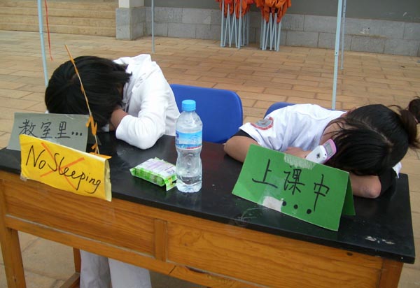 志愿者们通过人体雕塑的静态表演、自制的简单道具塑造了众多行为艺术,反映的主题主要有:中医养生、健康生活多运动、文明恋爱、认真学习、杜绝吸烟酗酒等等。整个下午,志愿者们认真做着静态表演,虽然天气炎热,可志愿者们没有丝毫懈怠。前来观看的师生络绎不绝,大家点头赞同,并纷纷在“讲文明签名榜”上留下了自己的名字。