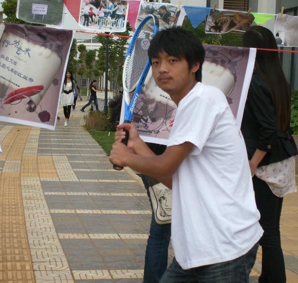 云中讯(院团委) 5月30日下午4点30分,由我院青年志愿者协会与昆明理工大学志愿者协会联合举办的“讲文明,与青年志愿者同行,向文明世界说你好——行为艺术展”在我院学生宿舍门口举行。