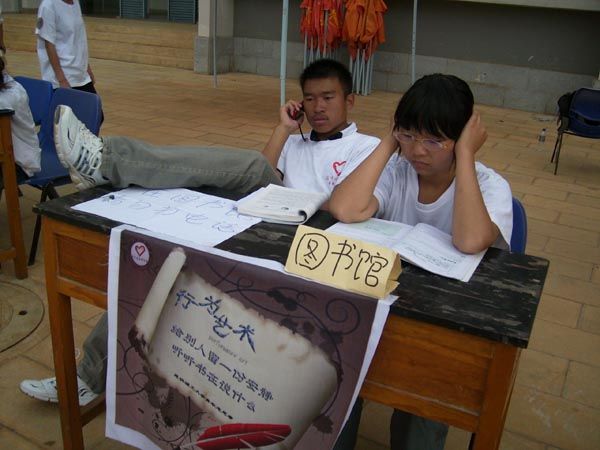 志愿者们通过人体雕塑的静态表演、自制的简单道具塑造了众多行为艺术,反映的主题主要有:中医养生、健康生活多运动、文明恋爱、认真学习、杜绝吸烟酗酒等等。整个下午,志愿者们认真做着静态表演,虽然天气炎热,可志愿者们没有丝毫懈怠。前来观看的师生络绎不绝,大家点头赞同,并纷纷在“讲文明签名榜”上留下了自己的名字。
