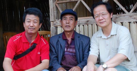郑进副院长与我院毕业生、现任沧源县佤族医药研究所所长刘宝林(左一),沧源佤族民间佤医田华昌(佤名:田岩保)合影留念