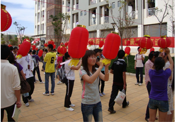 云中讯(院团委) 为纪念五四运动91周年,5月5日,由院团委、社团联合会组织的“红景天”灯谜会在呈贡校区举行。为开展好此次活动,主办部门精心准备,别出心裁地利用同学们所学的中医药知识准备了300余条灯谜,百余盏宫灯悬挂在道路中间吸引了广大师生。