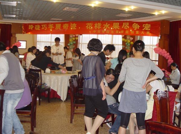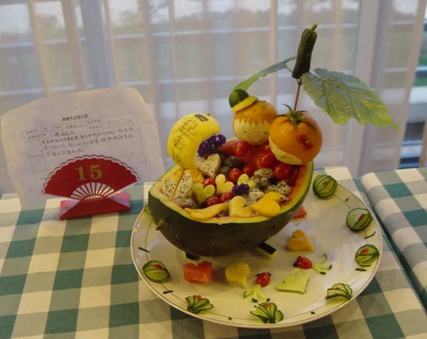 比赛中,同学们充分展示自己的奇思妙想,将各种色彩斑斓的水果做成多种造型,寄予了不同的内涵,有表现童真趣味的“两只小猪”、“深海乌龟”、“木偶”,有表达热爱自然、呼吁环保的“海底世界”、“竹林深处”、“鸳鸯戏水”,有表达追求理想的“扬帆起航”,祝福上海世博会的“东方明珠”、“红红火火”等。在青年节这个特殊的日子里,以这样的方式展现我们云中学子的青春与活力,告诉自己、告诉社会,我们青年学生拥有梦想,怀着抱负,关注社会,敢于担当。
