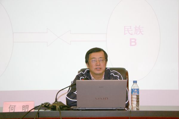 何明教授围绕胡锦涛总书记提出的我们党和国家解决民族问题和民族工作的纲领性思想——“两个共同”,即“各民族共同团结奋斗,各民族共同繁荣富强”的主题,从民族关系的重要性、中国民族关系现状、当前中国民族关系面临的挑战、“两个共同”的内涵与意义、推进“两个共同”的途径等方面,从历史和现实的角度,用通俗易懂的语言深刻阐述了开展民族团结教育的重要性和紧迫性,列举大量国内外有关民族问题的正反事例,同时结合本人对我国和云南少数民族地区调研的亲身经历,形象生动地诠释了“团结稳定是福、分裂动乱是祸”的道理。