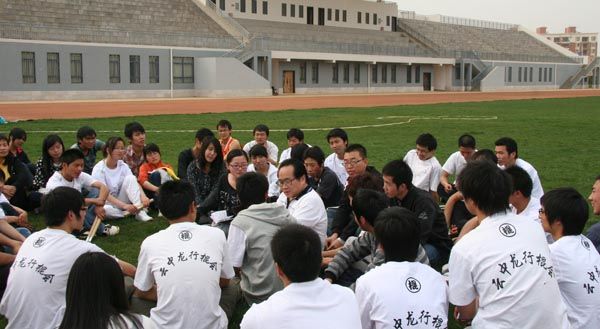 2010年3月18日下午四点左右,正当龙行双节棍协会的同学们在足球场上训练时,李庆生院长来到了足球场,看望问候大家。龙行双节棍协会的同学们十分高兴,纷纷向院长问好。学生处、团委负责人邹海舰、杞楚萍、王燕等老师亦一起来到同学中。