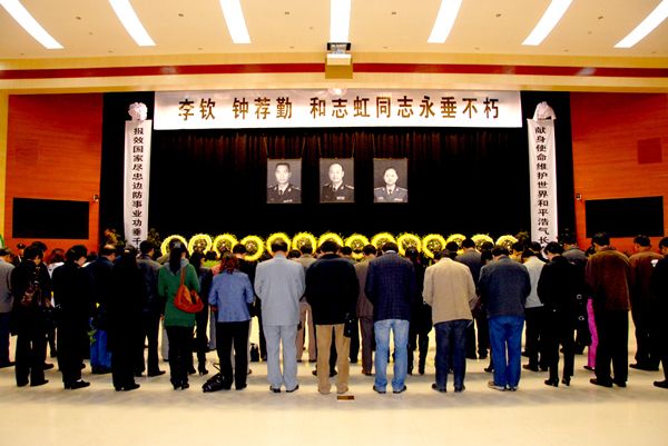 2010年1月19日下午14:30至15:00,我院副处以上领导干部60余人,前往滇池路云南边防武警总队驻地,吊唁维和英雄李钦、钟荐勤、和志虹。学院党政领导郭玉鉴、李庆生、王树发、王翠岗、陆炜諠、熊磊出席悼念活动。