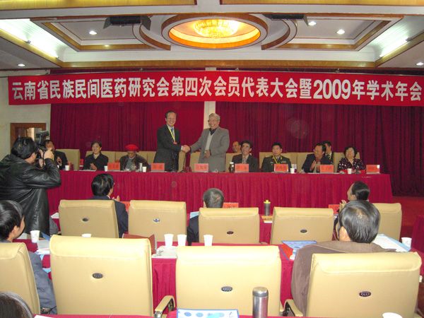 云中讯(民族医药中心)  云南省民族民间医药研究会第四次会员代表大会暨2009年学术年会12月10~11日在昆明召开,140多名来自云南省各地民族医药工作者出席了这次民族民间医药盛会。云南省科协学会部李毅部长、云南省卫生厅中医处赵勇处长、云南省食品药品检验局王景庆调研员、云南省医学会秘书长把志刚、云南省中医药学会秘书长葛元靖等上级部门和兄弟学会的领导、专家出席会议并作了重要讲话。