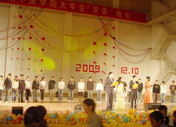 为给学生营造一个良好的英语学习氛围,从2005年以来,公共课程部、学工部和院团委每年都要开展一次类似的“双语”晚会活动。