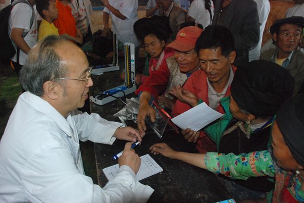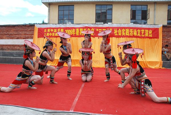 在牟定城乡和地震灾区,我院专家教授在烈日下为患者号脉开方、针灸治疗,受到农民群众的欢迎;文艺演出现场,远道而来的父老乡亲汇集成群,人头攒动,艺术团的同学们为当地百姓带去了多姿多彩的文艺演出;同时,同学们为群众宣讲科学发展观以及建国60周年伟大成果、发放《中医中药中国行宣传手册》、禁毒防艾宣传手册及防灾减灾宣传资料,耐心地为当地百姓讲解医学常识,发放常用药品,并详细讲解用量用法,用药禁忌等,让百姓用得放心。