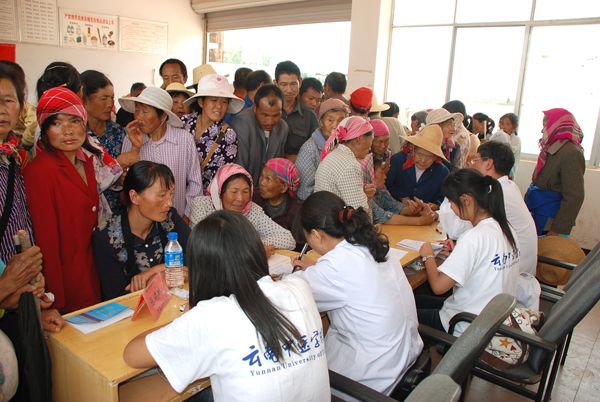 云中讯(团委讯)2009年7月20日—24日,我院组织大学生志愿者暑期科技文化卫生“三下乡”社会实践重点团队一行46人赴楚雄州牟定县开展活动。此次活动得到团省委、学院党政领导高度重视,团省委副书记陆平亲临活动现场,并在牟定县和我院师生座谈时作了重要讲话,院党委副书记王翠岗全程参加活动。