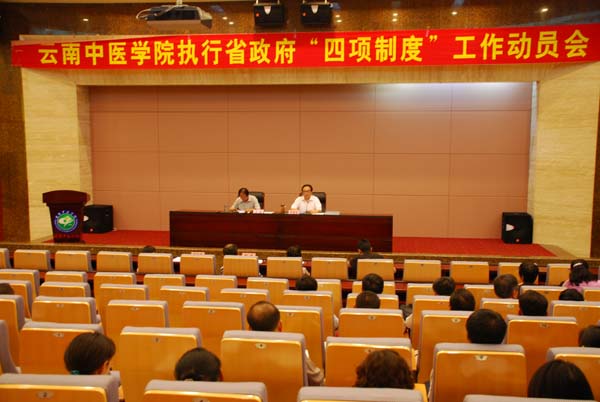 会上,李莹副院长传达了上级关于四项制度工作方面的文件规定,宣读《关于成立云南中医学院推行四项制度工作领导小组的通知》。
