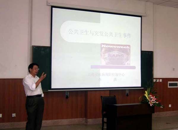 云中讯(通讯员 杨洪春) 2009年6月12日上午,社科部主办的实践教学活动在1111教室举行,邀请云南省疾病控制中心李洪教授为我院公共事业管理专业(卫生经济与管理方向)全体学生进行公共卫生与突发事件的专题讲座。社科部张丽主任主持。