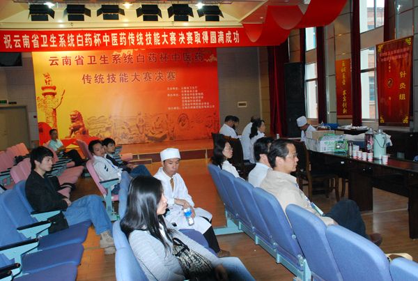 云中讯(通讯员 冯泽辉)2009年4月24日—26日,云南省卫生系统“白药杯”中医药传统技能、西医师岗位技能大赛在昆明开赛。本次大赛以“传承祖国医学、造福人类健康、运用现代科技、惠泽人民大众”为主题。本次比赛由云南省卫生厅、云南省总工会主办;云南省中医管理局、云南省教卫科工会、云南省中医药、针灸、中西医结合学会、云南省医院学会、云南省医师协会承办。