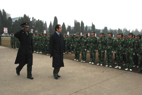 云中讯(宣传部) 2009年1月15日上午9点30分,我院2008级学生军训汇报表演暨结业典礼在昆明陆军学院阅兵场隆重举行。学院党委委员、副院长郑进,昆明陆军学院副院长张力波大校,军训办主任朱平上校,副主任田景大校出席典礼,学院有关部门负责人及全体军训师生和教官参加了典礼。典礼由昆明陆军学院朱平上校主持。