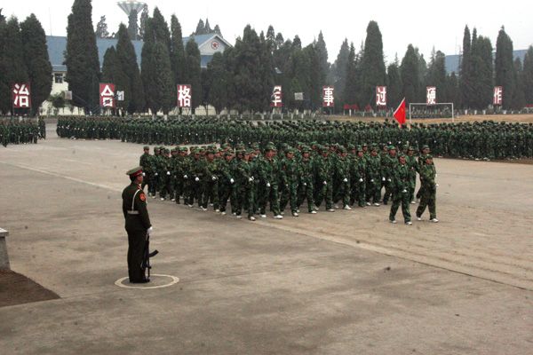 云中讯(宣传部) 2009年1月15日上午9点30分,我院2008级学生军训汇报表演暨结业典礼在昆明陆军学院阅兵场隆重举行。学院党委委员、副院长郑进,昆明陆军学院副院长张力波大校,军训办主任朱平上校,副主任田景大校出席典礼,学院有关部门负责人及全体军训师生和教官参加了典礼。典礼由昆明陆军学院朱平上校主持。