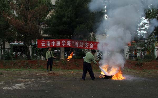 云中讯(宣传部)  为贯彻落实消防法规,普及消防知识,加强学院师生防火安全意识,防患于未然,学院消防委办公室(保卫处)于11月5日、6日分别在呈贡和关上校区组织开展了消防灭火操作技能演练活动。学院各重点部门的消防安全员和部分师生员工参加了此次活动。学院消防委办公室(保卫处)相关负责人就火灾危害、形成原因、如何预防和自救、逃生措施进行了详尽的讲解,并现场讲授和演示了灭火器的使用方法,随后大家实地使用灭火器进行了现场灭火演练,顺利完成演练任务,效果良好,达到了预期的目的。