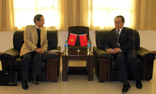 云中讯(对外合作交流中心) 越南社会主义共和国驻中国昆明总领事馆总领事阮洪海先生、领事丁光松先生于2008年11月3日到我校呈贡校区拜会李庆生院长并考察新校区。李院长应邀向阮总领事详细介绍了我校越南留学生学习、生活情况及近年来与越南相关高校和机构合作交流情况。阮总领事仔细询问了我校对越南学生的管理情况,对我校越南留学生人性化的科学管理表示赞赏。双方还就扩大我校与越南相关高校及机构交流合作事宜进行了商谈,交换了意见,达成广泛共识。阮总领事表示将为我校与越南相关高校的合作与交流牵线搭桥,提供支持和帮助。阮总领事一行还参观了校园、留学生宿舍、教室等设施。