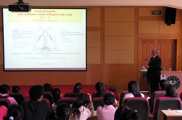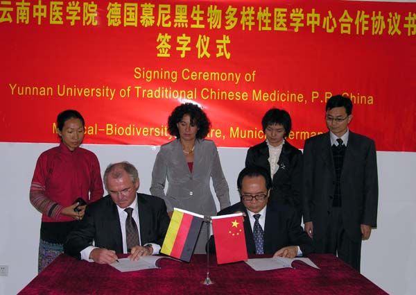 云中讯(对外合作交流中心) 我院友好合作单位德国慕尼黑生物多样性医学中心主任科勒?沃尔夫冈先生一行2人于2008年11月3日、4日访问我校。李庆生院长在呈贡校区接待科勒一行,双方签署了《中国云南中医学院 德国慕尼黑生物多样性医学中心合作协议》。双方就根据《合作协议书》联合开展各层次、多种形式的中医药教育,聘请我校专家到德方联合研究,派送相关人员到我校进行临床实习等工作项目进行了商谈,达成广泛共识。科勒先生一行对呈贡校区的建设留下了深刻美好的印象。3日、4日下午科勒先生在关上校区为我校师生作了“用肌肉测试法检测针灸或中药有效性及正确性”的学术报告。该报告使师生开阔了眼界,拓宽了学术视野,提供了新颖的科研思路,也为如何推动中医药国际化提出了新的思考。