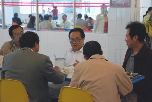 学院党委副书记、院长李庆生教授与王翠岗副书记、郑进副院长及相关人员在关上校区食堂共进午餐