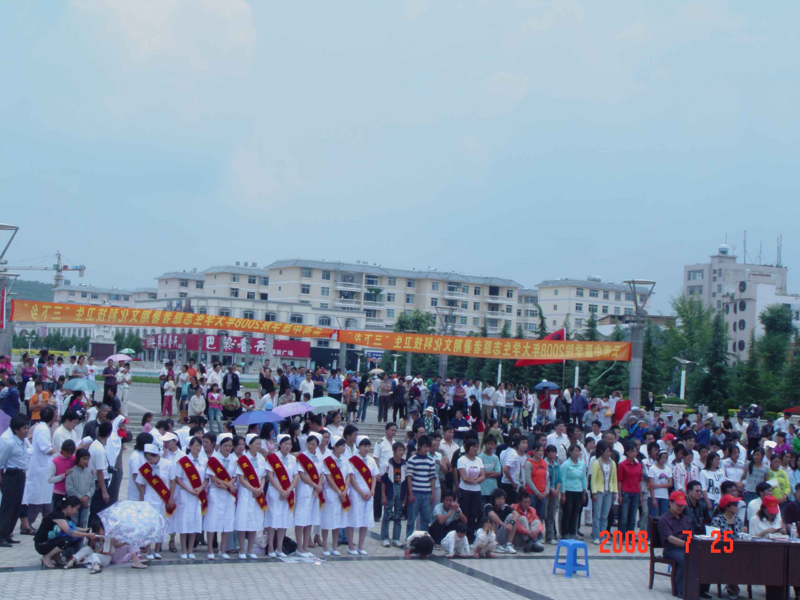 2008年7月25日,在鲁甸县文化广场“三下乡”社会实践活动现场。