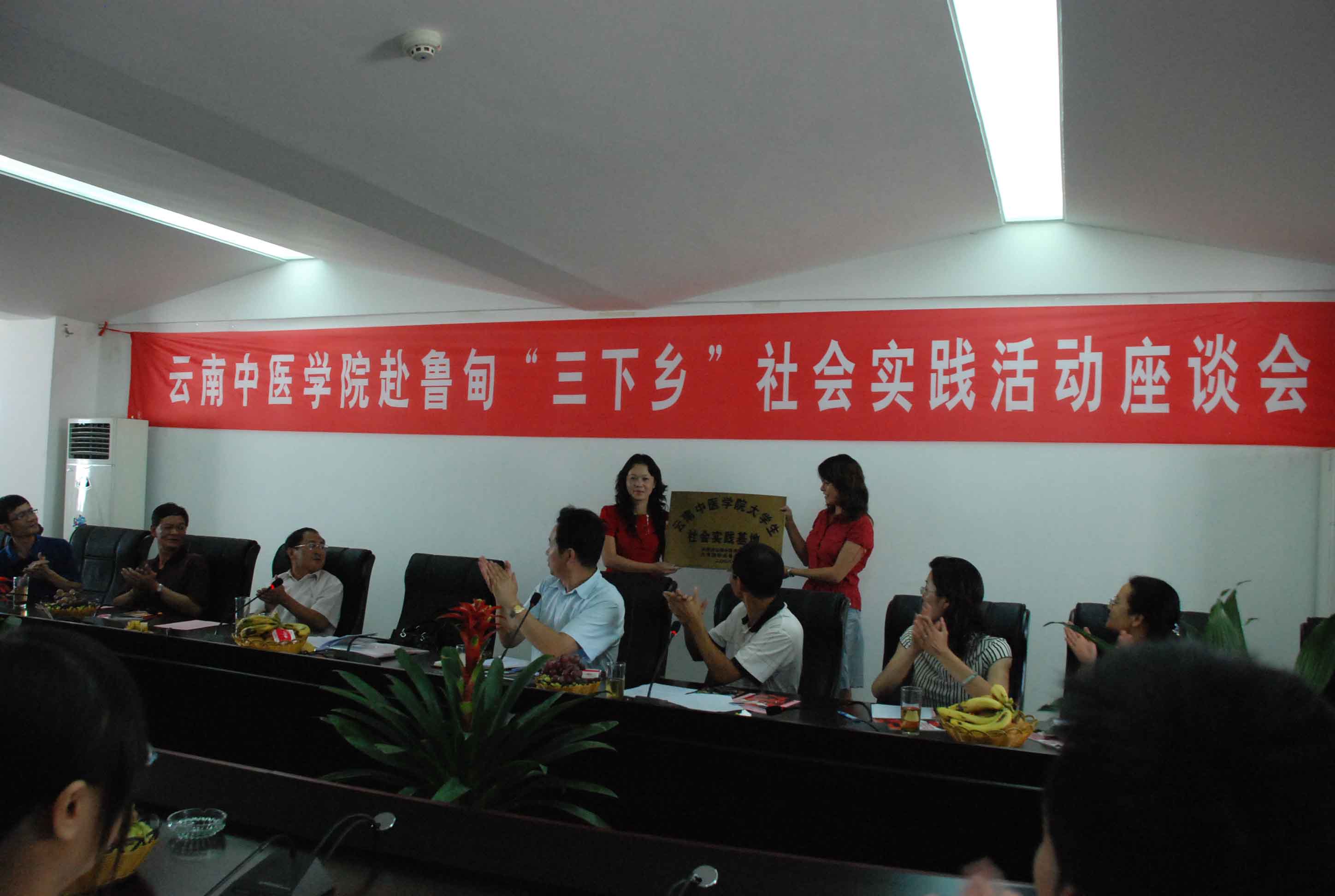 在鲁甸活动期间,我院师生与县委、人大、政府、政协班子领导同志,文化、教育、卫生、禁毒防艾、广电等相关部门负责人就贯彻科学发展观,发展中医中药事业举行了座谈,举行了我院团委与团鲁甸县委共建“云南中医学院大学生社会实践基地”授牌仪式,双方正式建立学生社会实践友好合作关系。