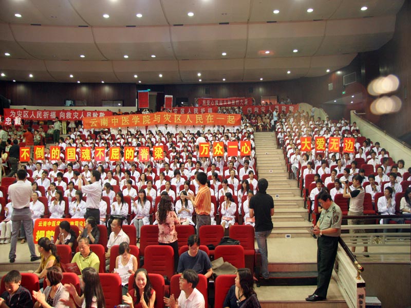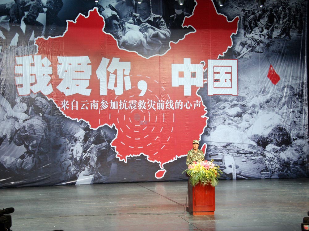 云中讯(宣传部) 主题为《我爱你,中国——来自云南参加抗震救灾前线的心声》的大型演讲报告会5月28日晚在云南大剧院倾情举行。作为此次报告会的参与和支持单位之一,我院党委副书记王翠岗、相关部门负责人和300多名师生代表参加并认真聆听了报告会。