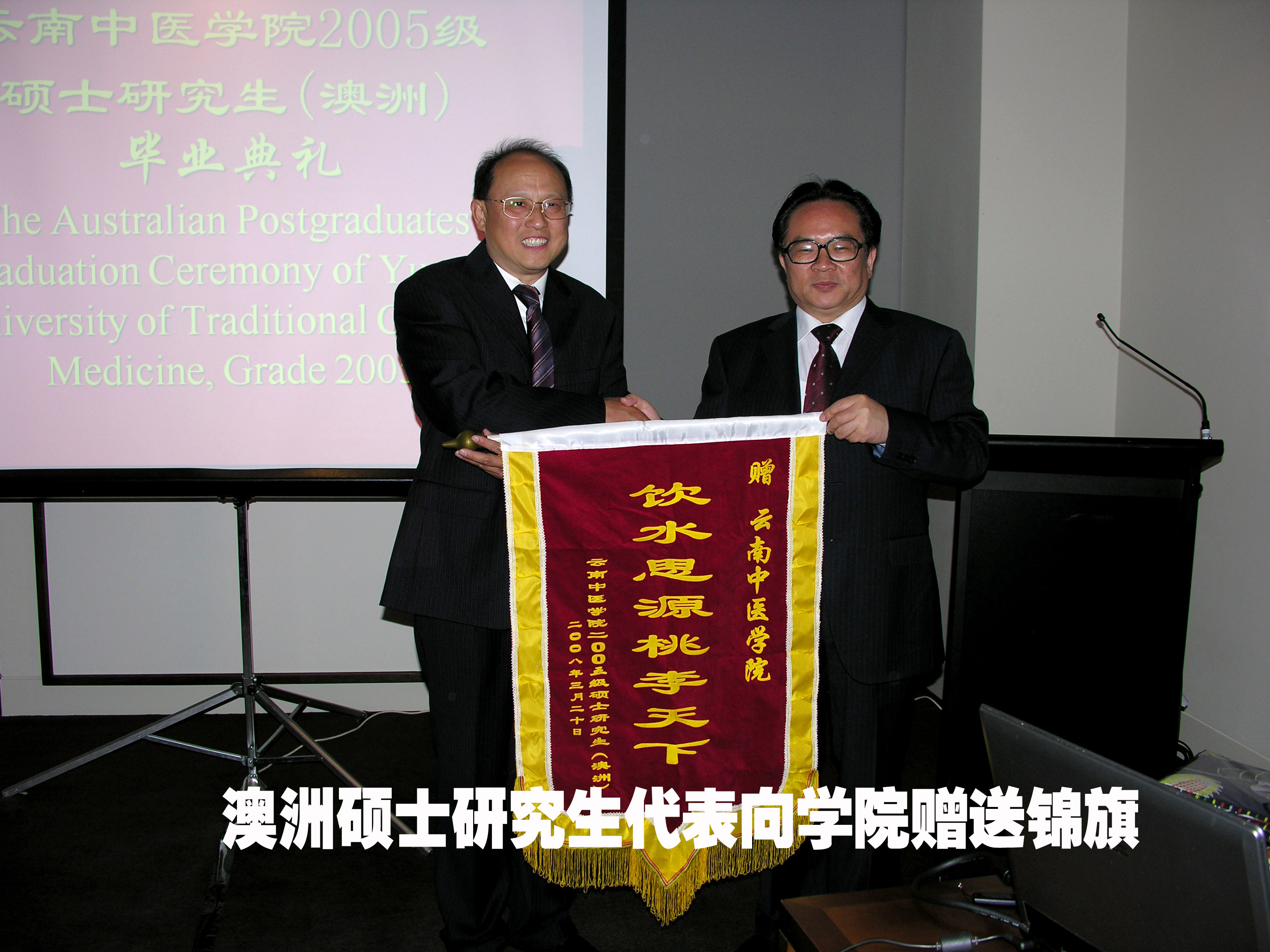 3月20日,我院在澳大利亚珀斯MURDOCH UNIVERSITY UWA Club举行了 “云南中医学院2005级澳洲硕士研究生毕业典礼”。中华人民共和国驻珀斯总领馆总领事李树钢先生及侨务领事陈铭进先生,MURDOCH UNIVERSITY代表,8名2005级澳洲硕士研究生,我院2名2007级澳洲本科生,澳洲硕士研究生家属共20余人出席了典礼。