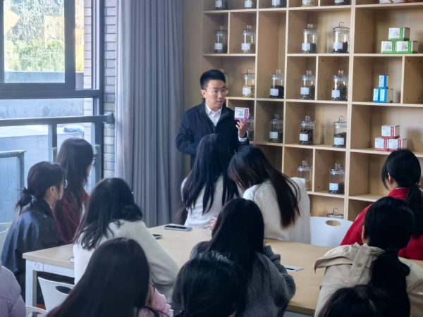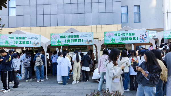 活动核心区“云中四时市集”按照春生、夏长、秋收、冬藏四季脉络划分为四大主题展区,每个区域紧扣对应季节的节气养生要义,让中医文化可触、可感、可学。春生区聚焦“春季养肝、启运生机”,策划了疏肝香囊 DIY、草药扎染、谷雨方剂投掷游戏等特色项目,搭配洛神花茶、东风解郁酥等应季药食,让师生从触觉、嗅觉、味觉等多维度感受中医“春宜疏肝”的养生智慧与民俗文化的碰撞交融。夏长区紧扣“夏季养心、清热祛湿”主线,推出中药醒神锤DIY、解暑草药嗅闻猜谜、彝族紫草膏熬制等实践活动,辅以清夏五白饼干、轻炸时蔬荟萃薄荷、蔗露茶饮等清爽美食,使参与者在清凉体验中掌握夏季防暑的实用技巧,领略民族医药的独特魅力。秋收区围绕“秋季养肺、平补肝肾”旨要,设置古法秋梨膏棒棒糖制作、纳西族黑芝麻丸DIY、秋分抛接气球答题等互动环节,搭配银耳雪梨汤、“玄芝黄金盏”茶点等温润药膳,让师生在味蕾与趣味互动中,感知中医养生与民族饮食文化的深厚底蕴。冬藏区以“冬季养肾、固本藏精”为理念,融合功法锻炼与非遗传承,开展八段锦习练、冬藏灯谜竞猜、苗药暖身包制作等活动,搭配瑞雪八珍酥、桂枣养生茶等温补小食,从功法操练到暖身滋养,全方位展现中医“冬宜藏精”的养生之道与民族文化的互融互鉴。
