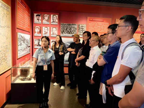 在庄严肃穆的纪念馆内,师生们在讲解员的引导下有序参观中央红军总部长征驻地旧址各个展厅。一件件珍贵的革命文物、一幅幅生动的历史照片、一段段感人的长征故事,再现了长征途中“居丹桂运筹帷幄,渡金沙用兵如神”的光辉历程和艰苦卓绝的革命岁月,党员们深刻感受到红军将士们矢志不渝的革命意志。