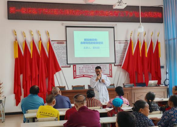 7月17日,实践活动聚焦基层医疗服务,队伍来到兴街镇新兴社区。当天,一场主题为《解码糖尿病:血糖背后的健康密码》的知识讲座如期开展,主讲人第一临床医学院博士研究生党员晏和国深入浅出地为现场群众讲解了糖尿病防治知识,帮助大家科学认识血糖与健康的关系。