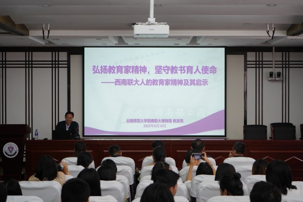 参观结束后,听取了西南联大博物馆副馆长铁发宪所作的《弘扬教育家精神,坚守教书育人使命——西南联大人的教育家精神及其启示》专题讲座。铁发宪从习近平总书记关于教育家精神的重要论述、西南联大人的教育家精神、西南联大人教育家精神的当代启示三个方面作了深入讲解。