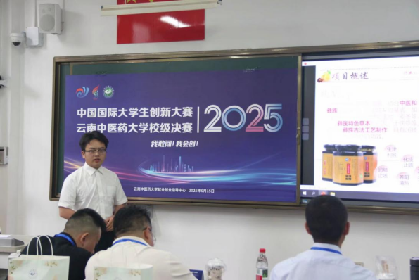 云中讯(就业创业指导中心)2025年6月15日,中国国际大学生创新大赛(2025)云南中医药大学校级决赛在呈贡校区火热开赛。本次赛事由学校就业创业指导中心主办,来自全校各学院的91个优质创新创业项目同台竞技,充分彰显了学校“以赛促学、以赛促创”的实践成效。?