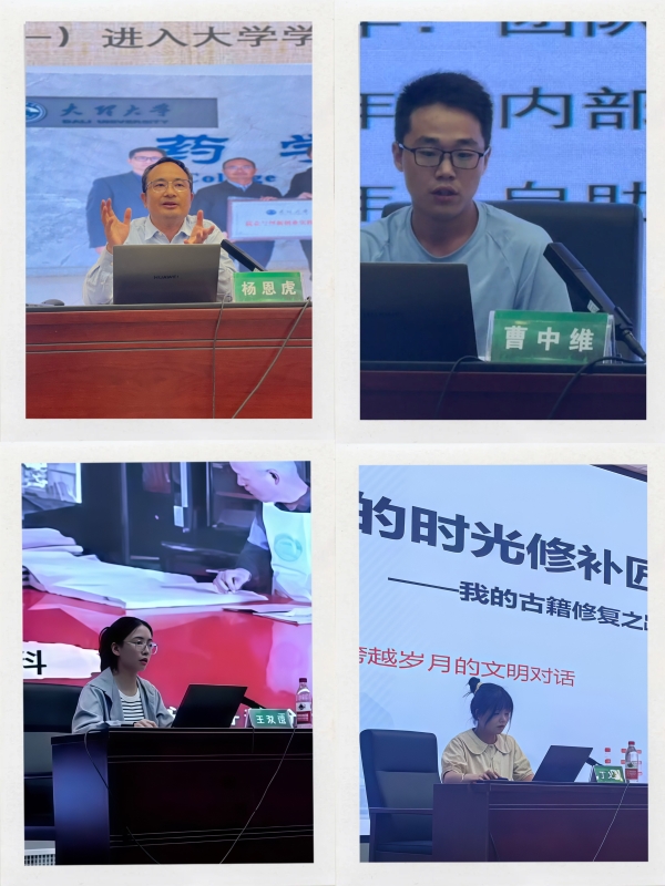 阿昌医药匠人杨恩虎,怀抱传承民族医药的梦想,脚踏实地,钻研技艺,勇于创新,在传统与现代交汇的道路上砥砺前行;校园创业先锋曹中维深情讲述“和合屋”的创业故事,他不畏艰难,以坚韧不拔的毅力和无私奉献的精神,将平凡的创业梦想铸就成不凡的事业,成为助力校园经济发展的生动实践者;默默奉献在古籍修复勤工岗位上的丁文慧和王双琼,她们兢兢业业、精益求精,用双手让千年古籍重获新生,使文明之光得以延续,是文化传承的守护者。四位嘉宾用实际行动诠释着梦想的力量、奋斗的意义和奉献的价值。他们的故事如同一首首激昂的乐章,激励着在场的每一个人在各自的道路上勇敢追梦,不懈奋斗。
