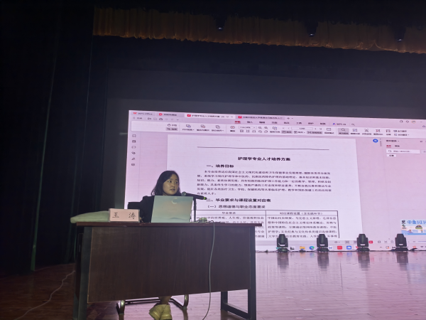 5月7日,王涛首先对护理学专业人才培养方案进行了解读,然后对专业认证自评报告中标准2教育计划、标准3学生成绩评定、标准7管理与教育评价等三个部分进行了解读培训。