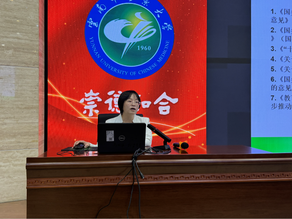赵荣以国务院最新颁布的文件为索引,介绍了传承中医药事业是中华民族伟大复兴的重要内容,紧接着从“中医临床面对的困境”“什么是中医临床思维”以及“怎样培养中医临床思维”三个章节分别展开讲述,提出“早临床,多临床,反复临床,全程临床”的临床培养模式。讲座尾声,她建议2024级新生在日常学习生活中,通过对自己的记录,感悟所学,使学有所用,然后逐步爱上中医,懂得中医,最终让中医成为自己人生的一部分。