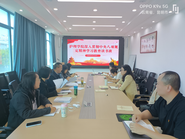 云中讯(通讯员 罗如飞)4月10日,护理学院在精诚楼举行深入贯彻中央八项规定精神学习教育读书班。读书班由学院党委书记毕立雄主持,学院党委班子成员、各党支部书记参加。