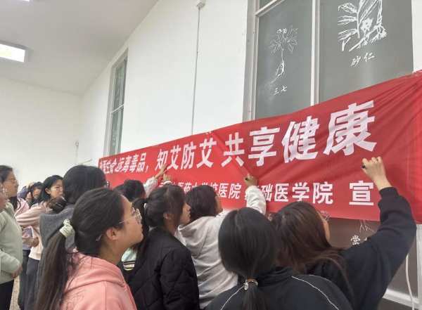 活动中,校医院杨希进行了禁毒防艾知识讲座,她用通俗易懂的语言给同学们讲解毒品的种类、危害以及艾滋病的传播途径、预防方法以及毒品与艾滋病的联系等知识,典型的涉毒涉艾案例,普及预防毒品侵袭和艾滋病的方法,以及正确对待吸毒人员和艾滋病人的方式。台下同学们认真听讲,深刻意识到毒品和艾滋病离自己并不遥远,必须时刻保持警惕。在互动环节,同学们积极踊跃地举手回答问题,把讲座上所学的知识牢牢记在心里,并带动身边的亲朋好友一起了解认识禁毒防艾注意事项,提高识毒、防毒、拒毒和防艾的能力,共同筑牢校园的安全防线。现场气氛热烈,到了签名活动环节,同学们在宣传横幅上郑重签名,表达着对禁毒防艾事业的支持,决心从自身做起,为构建一个无艾的校园环境贡献力量,展现出云中青年的担当与使命感。