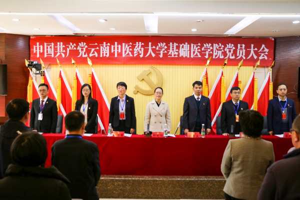 云中讯(基础医学院)12月5日下午,中国共产党云南中医药大学基础医学院党员大会在呈贡校区召开。校党委副书记祁苑红、组织部部长李正良到会指导。基础医学院115名正式党员参会,非中共党员院领导、民主党派代表、高层次人才代表、非中共党员教研室(实验室)主任、学院学生会代表、预备党员代表列席会议。大会由基础医学院党委副书记、院长石安华主持。