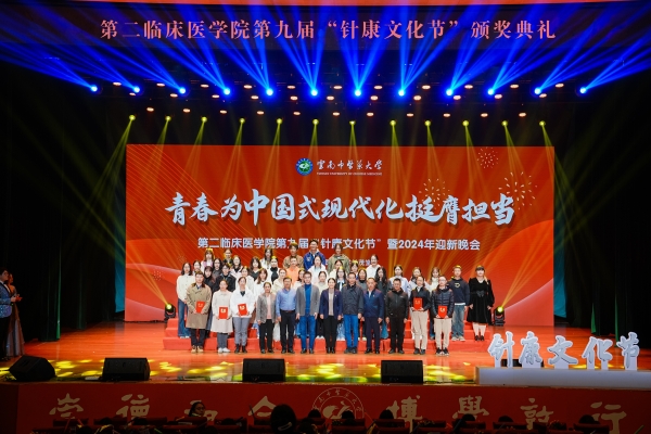 云中讯(通讯员 张志豪)11月25日晚,第二临床医学院在呈贡校区举办第九届“针康文化节”暨2024年迎新晚会。副校长邰先桃出席,学工部、校团委、兄弟学院等有关部门领导、学院党政领导以及学院教师、学生等参加。