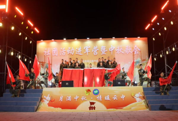 云中讯(校团委)9月17日晚,校团委在呈贡校区举办2024年社团活动进军营暨中秋歌会。活动由校团委、学工部、武装部联合主办,全体军训教官、2024级全体新生参加活动。