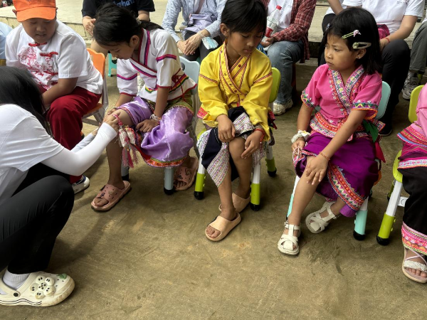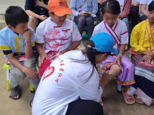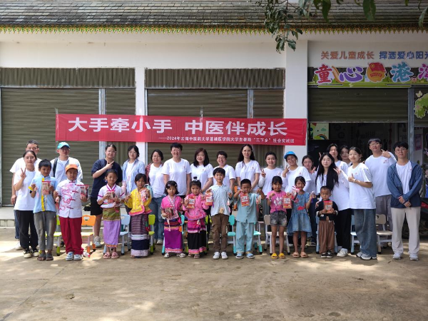 7月17日实践团来到章朗村,与当地的布朗族小朋友开展了一场别开生面的“大手牵小手,中医伴成长”中医药文化进校园活动。活动现场,实践团队员们通过生动有趣的讲解和丰富多彩的互动形式,向小朋友介绍了中医药基本知识、常用腧穴取穴方法、常见的中草药识别方法,活动过程中,还设置了互动环节,让小朋友们体验了艾灸足三里的中医疗法,小朋友积极参与,表现出对中医药文化的浓厚兴趣。
