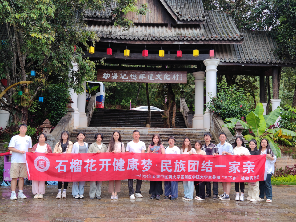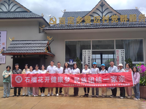 云中讯(基础医学院)7月15日至19日,基础医学院“石榴花开健康梦•民族团结一家亲”大学生暑期“三下乡”社会实践团赴西双版纳傣族自治州勐海县开展社会实践活动。实践团由基础医学院党委书记孙雪萍带队,团委书记李姝洁、辅导员杞鹏翔、教师王雪梅和罗光云以及13名同学组成。