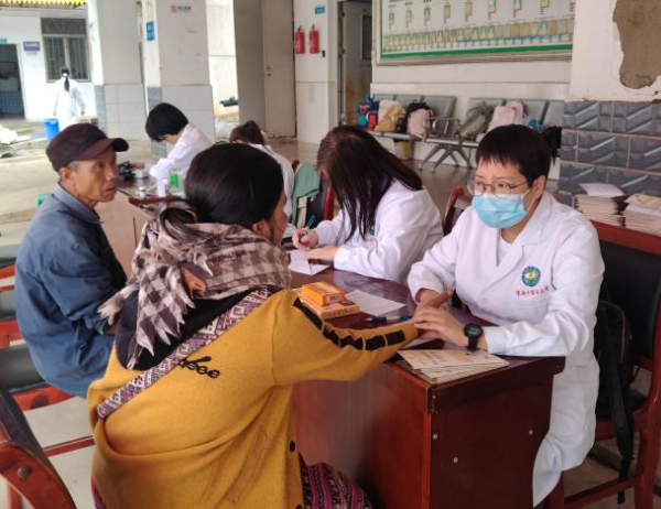 活动现场,王雪梅和罗光云两位中医药专家通过望、闻、问、切等传统中医诊断方法,耐心地询问就诊布朗族群众的身体状况,并根据每个人的身体状况和病情,给出了个性化的治疗方案和日常保健建议。同学们为布朗族老乡们进行推拿按摩、耳穴埋籽、测量血压、赠送药品、发放中医药健康手册,开展少数民族地区医疗卫生设施及健康需求调查。